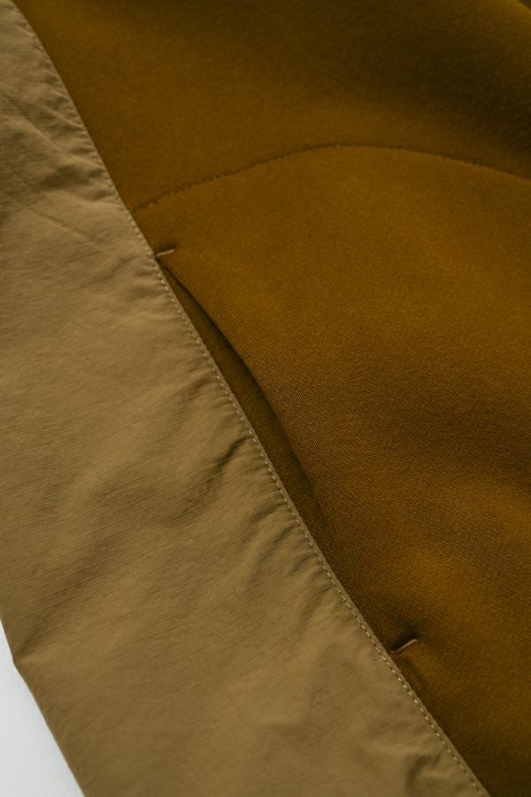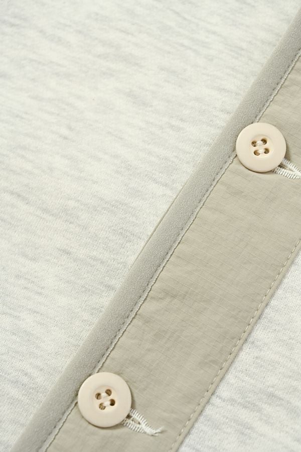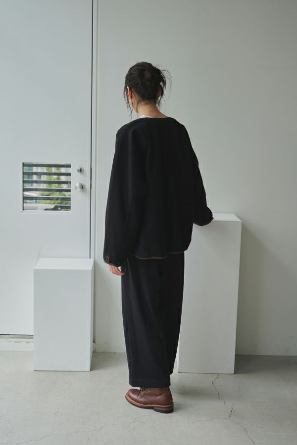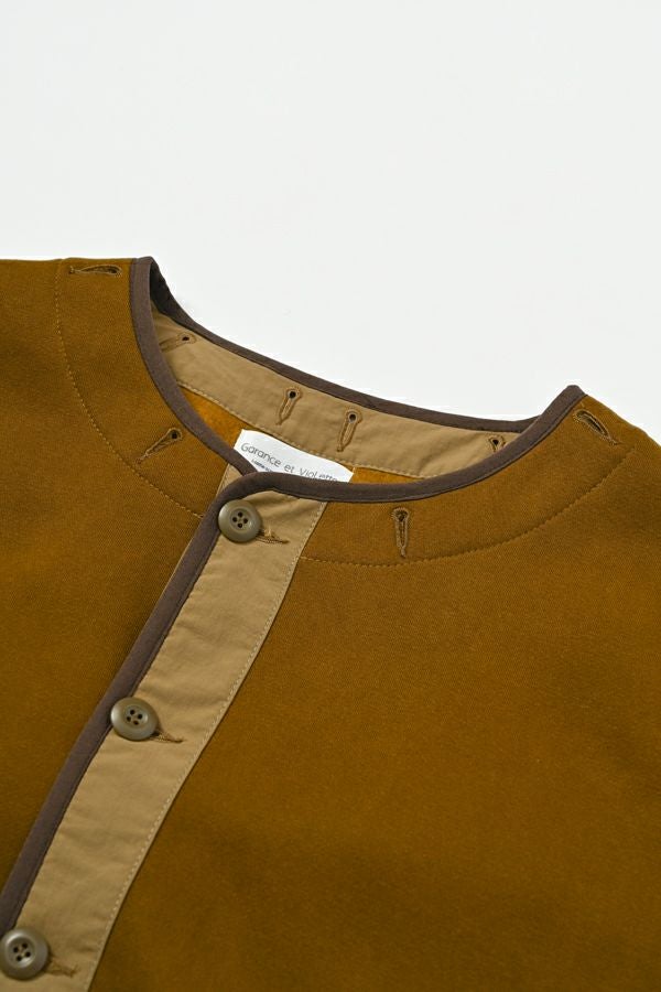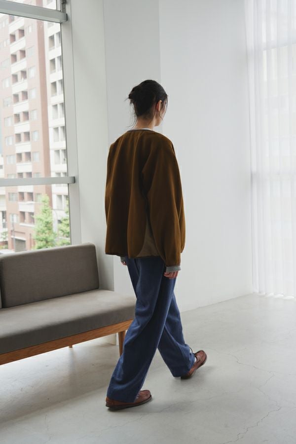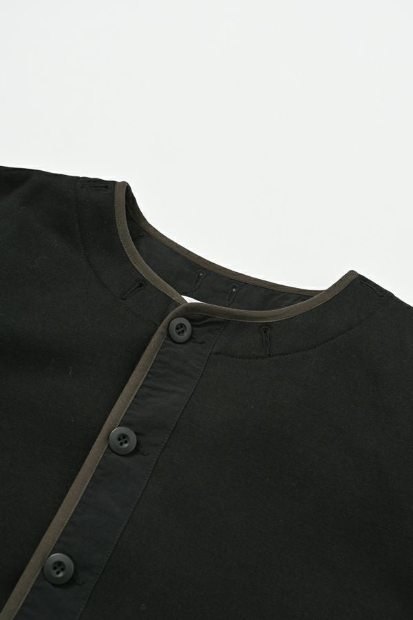 冬の装いに、ハンサムな温もりを。機能美が映えるライナーカーディガン。 ライナージャケットの無骨な魅力を、上質な裏毛素材でクリーンに昇華。しっかりとした地厚の裏毛にピーチ起毛を施すことで、ほんのりとした光沢感とスウェードのような質感を生み出し、冬の装いに温もりと高級感を添えてくれます。 オーバーサイズながら、袖まわりはすっきりと。インナーとしても着られる絶妙なサイジングで、幅広い着こなしに対応します。アームホールは広めなので、厚手のニットの上からもレイヤード可能。脇の布帛切り替えや、前後で異なる仕様に切り替えた袖の構造など、見た目と可動性を両立した拘りのシルエットです。 ミリタリー由来のディテールもさりげないアクセントに。ライナーの名残を感じさせるボタンホール仕様の袖口は、留める位置でシルエットの変化も楽しめます。 デイリーに馴染みながら、どこか都会的。そんなハンサムな一枚です。