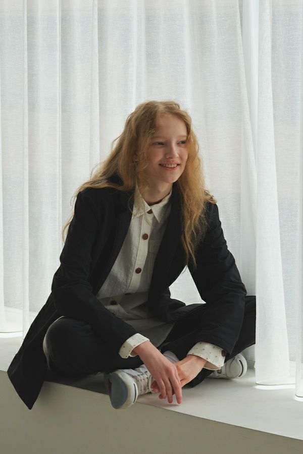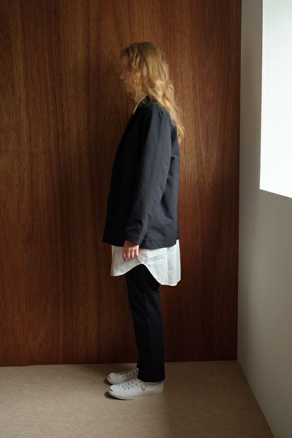 "Violette"らしいオケージョンアイテムの登場です。 コーデュラワークジレ(24225-5655WH)、コーデュラワークパンツ(24225-9652WH)の3点でのスタイリング提案アイテムです。 ジャケットは縦長のストレートシルエットになっています。裾もスクエアヘムになっており、少しワークジャケットのような雰囲気を持たしています。ラペルや袖の切り替えに細いラインが入っているデザインで、テーラードラペルでの着用がメインですが、トップボタンを閉じて着用することも可能です。その時の小さな襟が可愛い雰囲気になっています。 マットな光沢感のあるコーデュラ素材はタテ、ヨコ、ナナメに伸縮性のある優れものです。アウトドアアイテムや、Mensブランドでは使用されることの多い素材ですが、Ladysブランドではなかなか見ない素材になっています。 ●コーデュラとは… 伸縮性や擦りや引き裂き、擦り切れにとても強く撥水性もある優れた素材です。 普通のナイロンよりも7倍の強度があると言われている素材は、アメリカの インビスタ社が認めた厳しい条件をクリアできた工場でしか作成できない特別な 素材です。