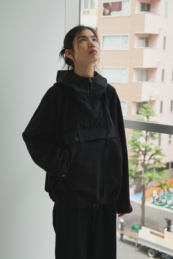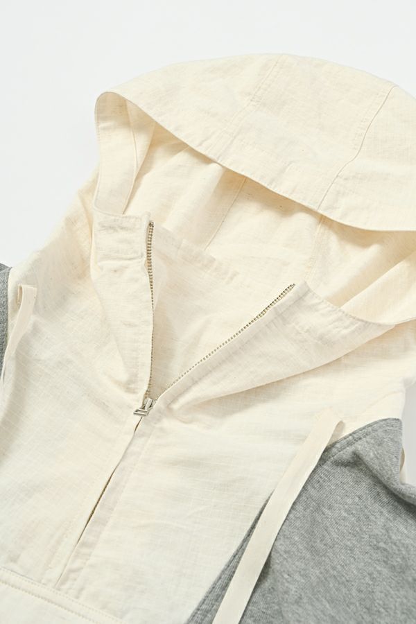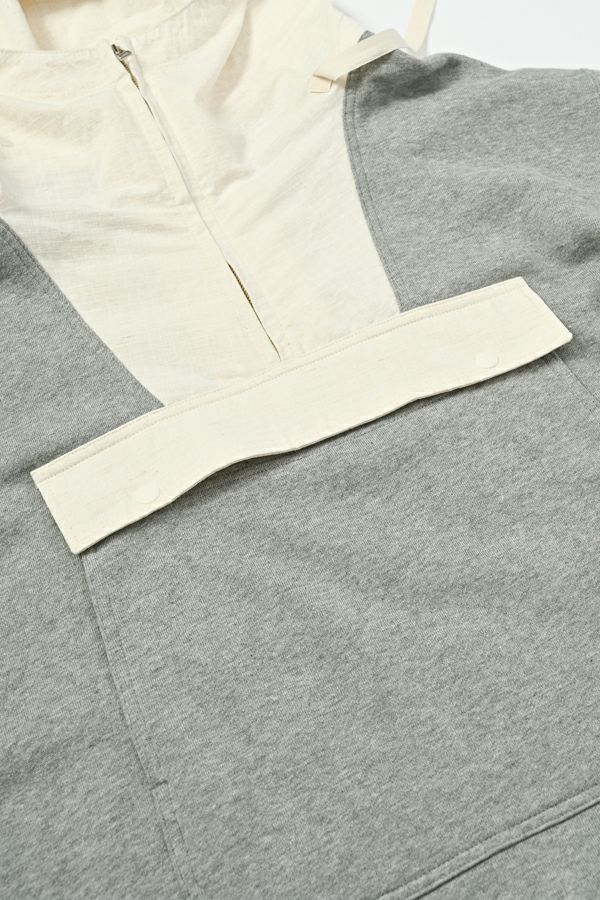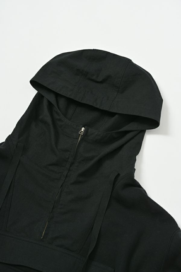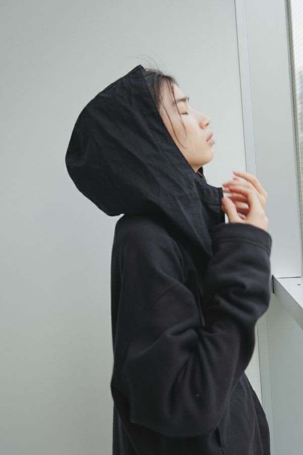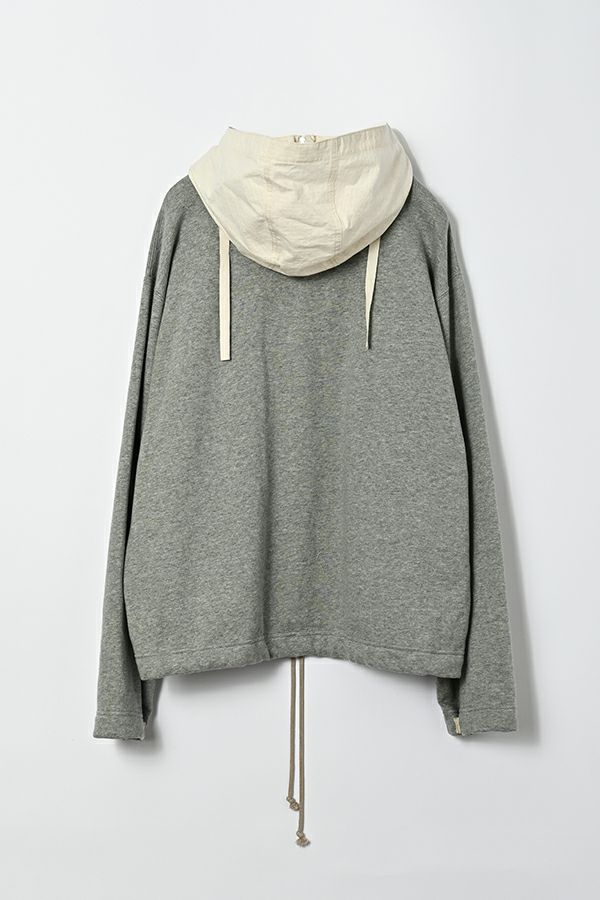 軽やかに、あたたかく。ディテールで差がつくスノーパーカー。 スノーパーカーをベースに、現代的なミニマルデザインへと落とし込んだ一着。ミリタリー由来のディテールを活かしながらも、日常に馴染むすっきりとしたバランスで仕上げています。 素材は、ふくらみと柔らかさを兼ね備えたHEAVY裏毛。タオルのようなパイル編みに裏起毛をかけ、さらにタンブラー加工を施すことで、見た目の厚み以上に軽く、あたたかな着心地に。裏毛ならではのラフな表情が、気負わず着れる雰囲気を演出します。 フードまわりには綿麻のリップストップ生地を使い、軽量ながらハリ感のある仕上がりに。マチ付きでフードが垂れない構造、フード脇のテープは寒さ対策で首ぐりのサイズ調整や、ガスマスクのコードを縛るため、などかつての防寒着に備えられた実用的ディテールも健在です。 裾のドローコードや袖口のドットボタンなど、細部に宿る機能美が、スタイルに奥行きを与えてくれます。メンズライクな空気感を纏いながら、あくまで軽やかに。寒さに備えながら、気分はスマートに決まるアイテムです。 ●日本製