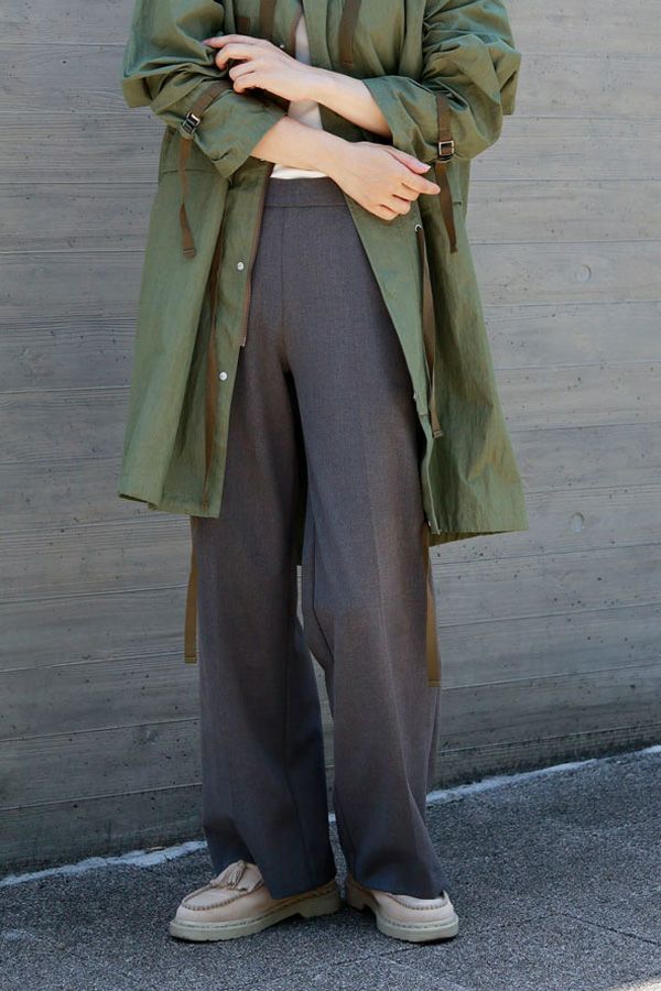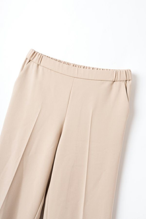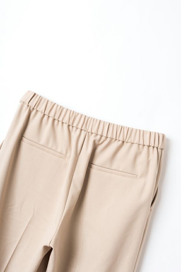 楽してきちんと見えする優秀なダブルクロスイージーパンツ。 ウエストゴム仕様で楽に穿けて、シーズンレスで使える素材。 ややベルボトムラインでセンタープレスが入った、リラックス感がありながらも足が綺麗に見えるシルエットに。 家庭でのお洗濯も可能も嬉しいポイント。