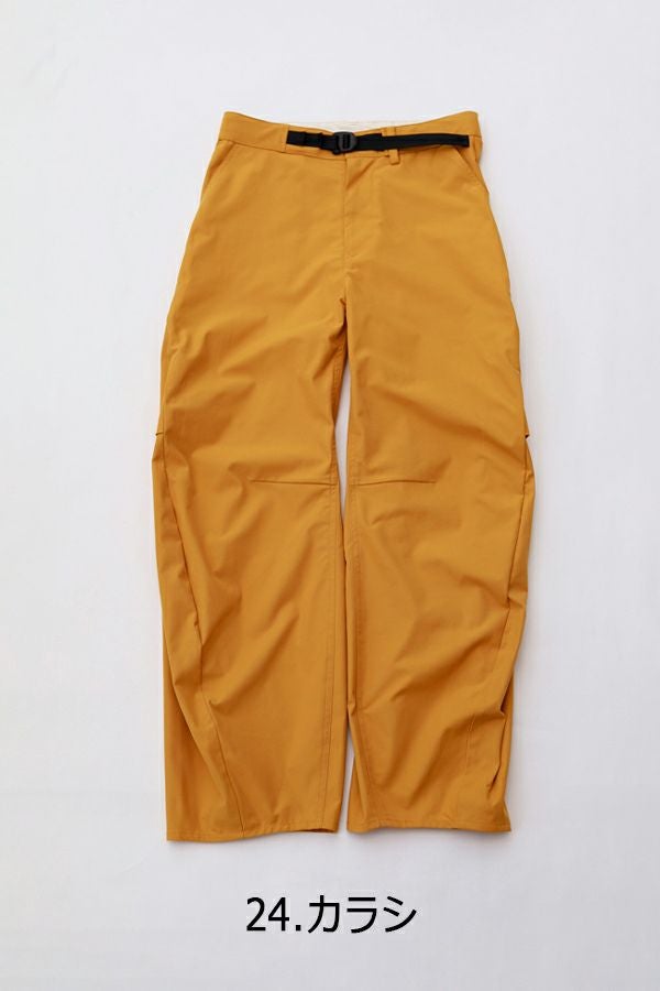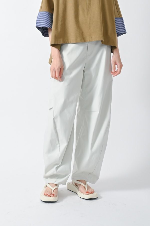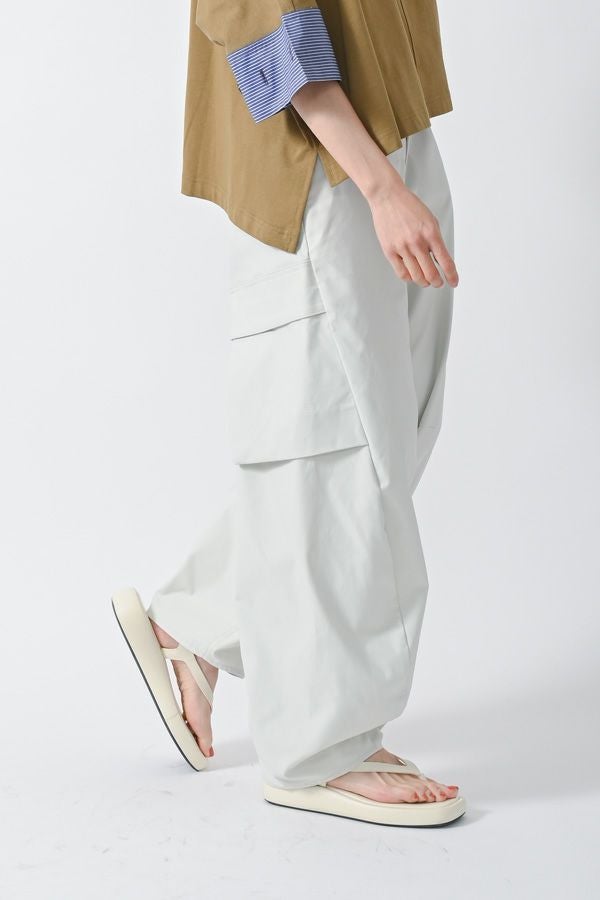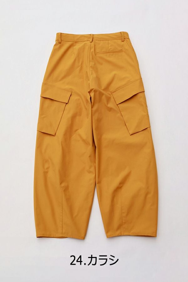 機能的なサスティナブル素材 Soronaを使用したミリタリーパンツ。 植物由来の再生繊維は、ソフトで滑らかなタッチ、ストレッチ性と高い伸張回復性、耐シワ性、速乾性、耐ピリング性など、肌触りやパフォーマンス性に優れていることがメリットです。 特徴的な立体シルエットに、目立たないカーゴポケットがついています。物が入らない間はボトムがスッキリとして見える、ヨーロッパミリタリーなどにみられるディティールです。脇やそこにマチ分があるので、収納力も十分にあります。