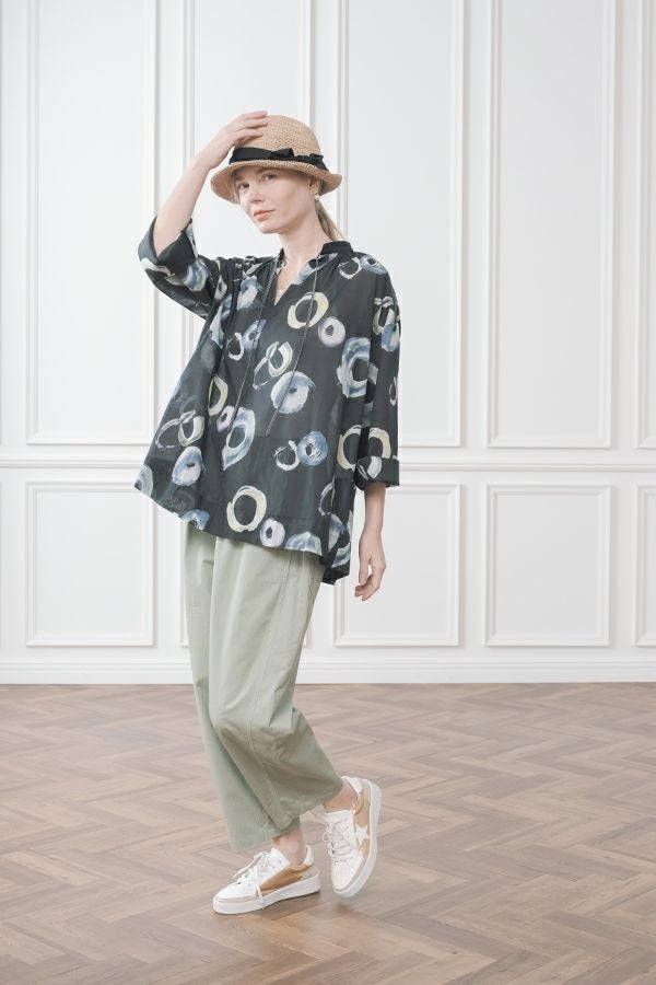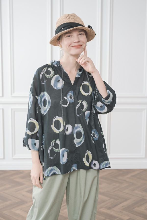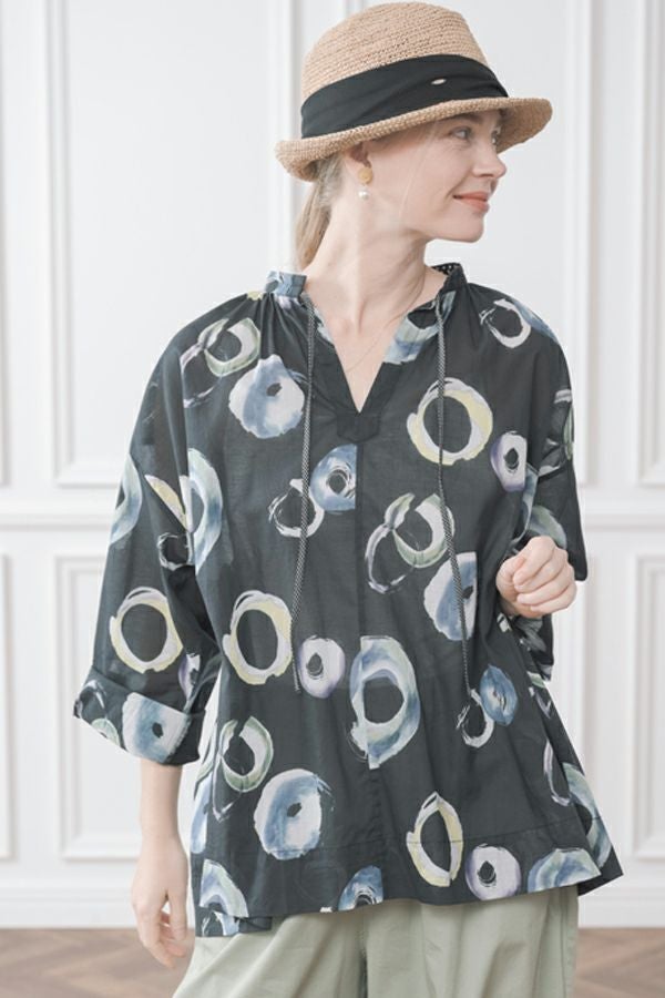 サークルプリントドロストブラウス