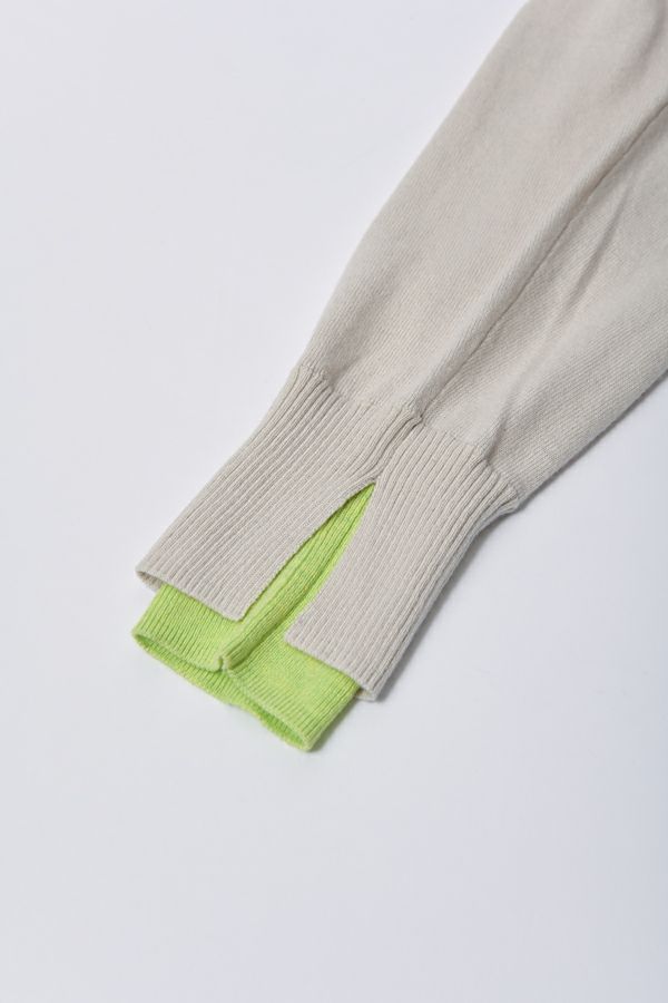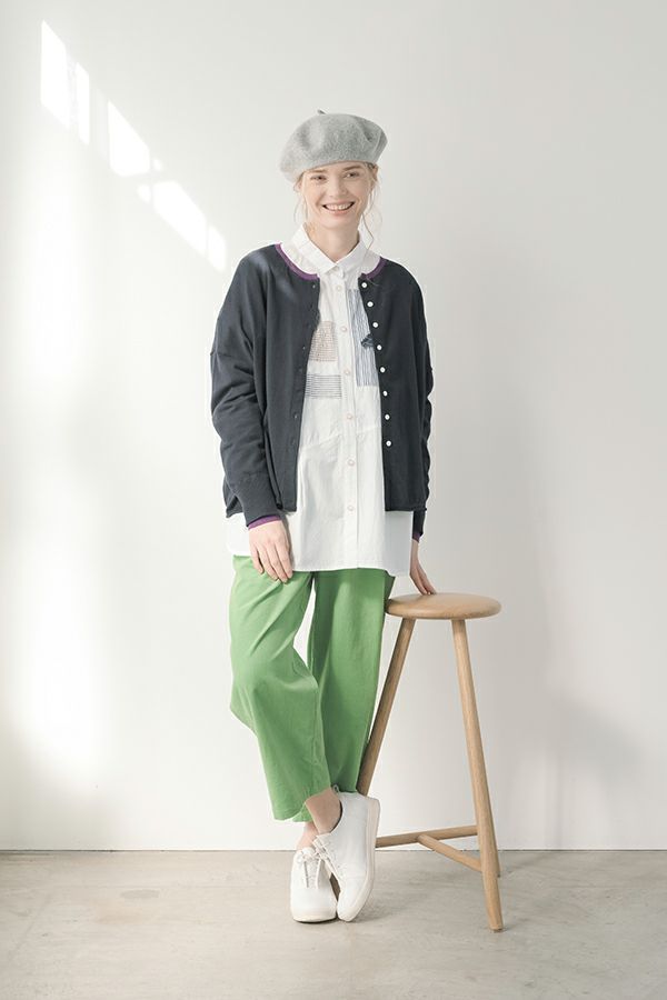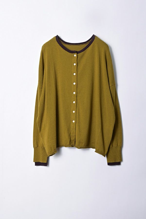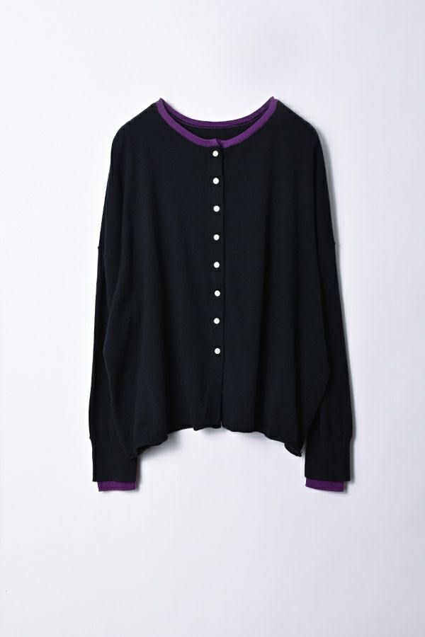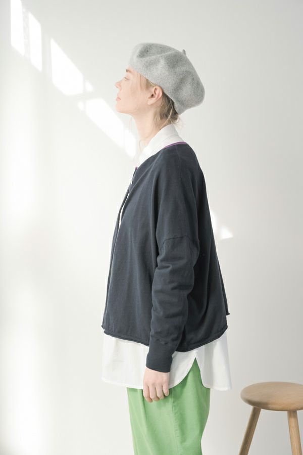 シルク混の滑らかな肌触りが着心地よい前後着用可能なカーディガン。 大きすぎず、小さすぎない絶妙なバランスの衿ぐりが女性らしい衿元をつくってくれます。袖口リブは二枚重ね。上側リブを折り返すと袖口変化が楽しめます。 カーディガンとしてはもちろん、釦を留めるとプルオーバーとしても着用でき、そして後身を前にして浅丸首プルオーバーとしても着用可能の着回しが万能カーディガンです。 シンプルなスタイリングにも、ぱっと羽織るだけで着映えする1着は、カジュアルから綺麗めまで幅広くコーディネートをお楽しみいただけます。 ●ご自宅で手洗い可能