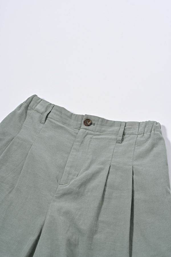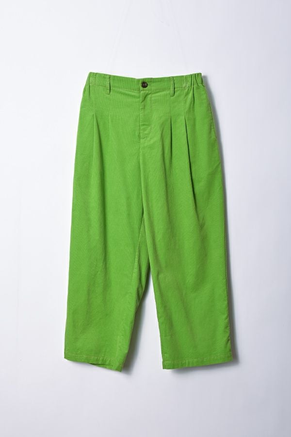 前ファスナー開きの9分丈 細コーデュロイタックパンツ。 ヒップ廻りをカバーするゆとりの4タック入りなので、履き心地抜群!裾を折り返すと脇の配色テープがポイントです。 特殊な洗い加工をして、かなり柔らかく落ち感のある風合いに仕上げています。 オフ、オレンジ、ライムグリーンなどライトカラーが新鮮な色バリエーション。 カジュアルにタウンユースや、ちょっとしたアウトドアにも使えるアイテム! ●2サイズ展開