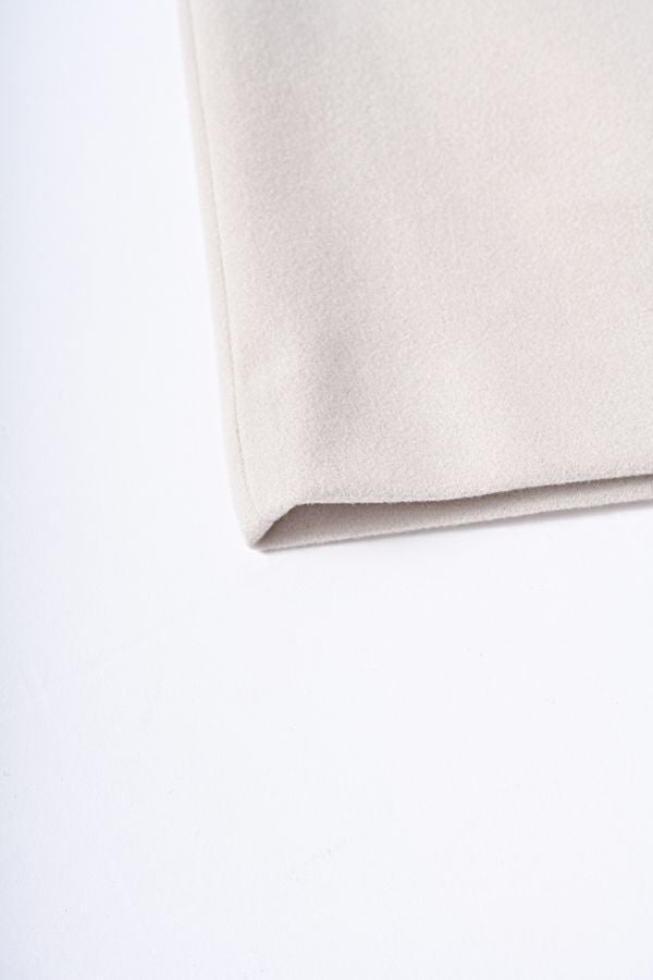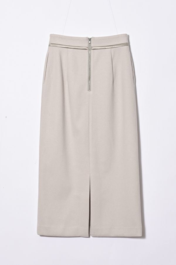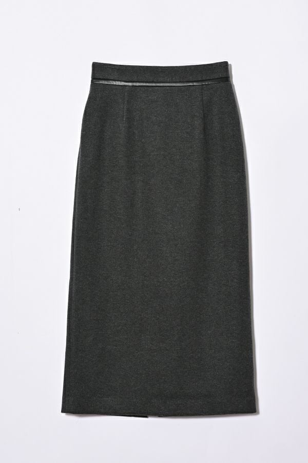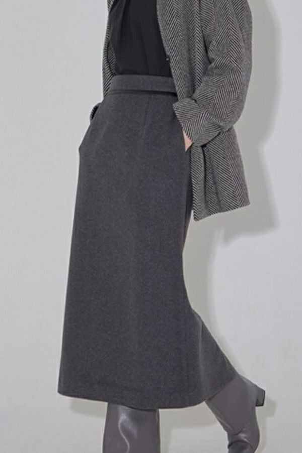 ウールタッチの大人かっこいいタイトスカート。 リアルなウールの風合いを表現したストレッチジャージー素材を使用。 ①軽くてストレッチが効いているので動きやすい ②シワになりにくい ③家庭でお洗濯もできる とても扱いやすいのが特徴です。 ウエスト切替え部分は高級感のある光沢でレザーライクな素材でアクセントを。 シンプルなデザインですのでコーディネートもしやすく、ON/OFFどちらのシーンでも巾広くお使いいただけます。 ●同素材のショートコクーンプルオーバー(24233-1823Y)とセットアップも可(着用の際はトップスの前裾をインしたスタイリングがオススメ。) ●日本製