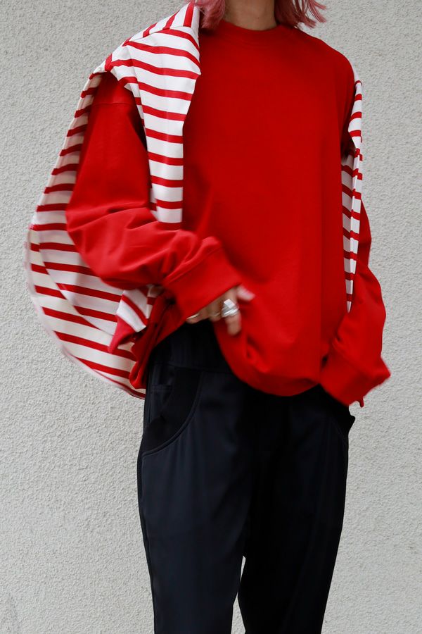 ショート丈のプルオーバーやジャケットのインナー合わせでも存在感のある一枚です。肌触りも良く、レイヤードスタイルに使いやすいので、色違い(イロチ買い)で何枚も欲しくなるアイテムです。