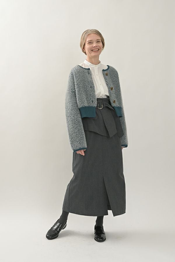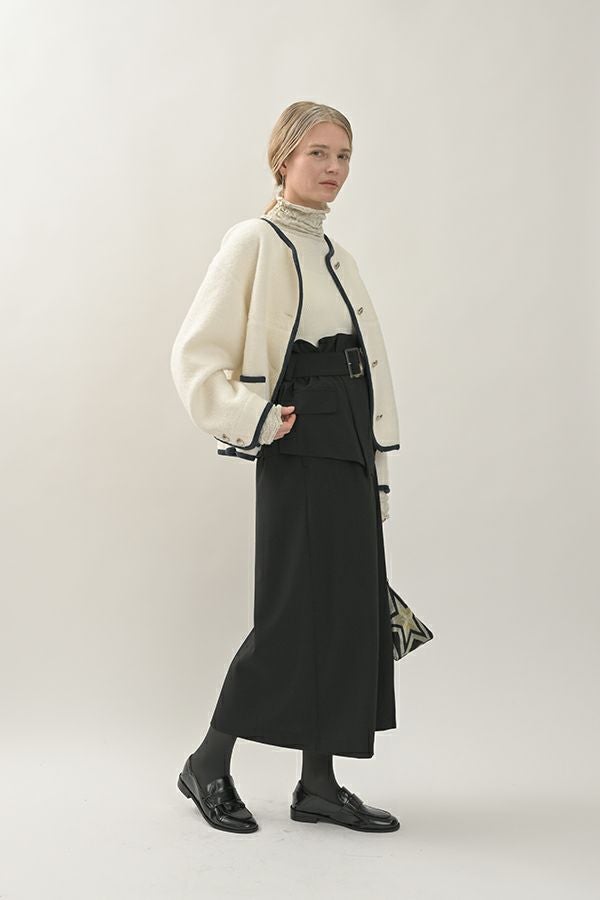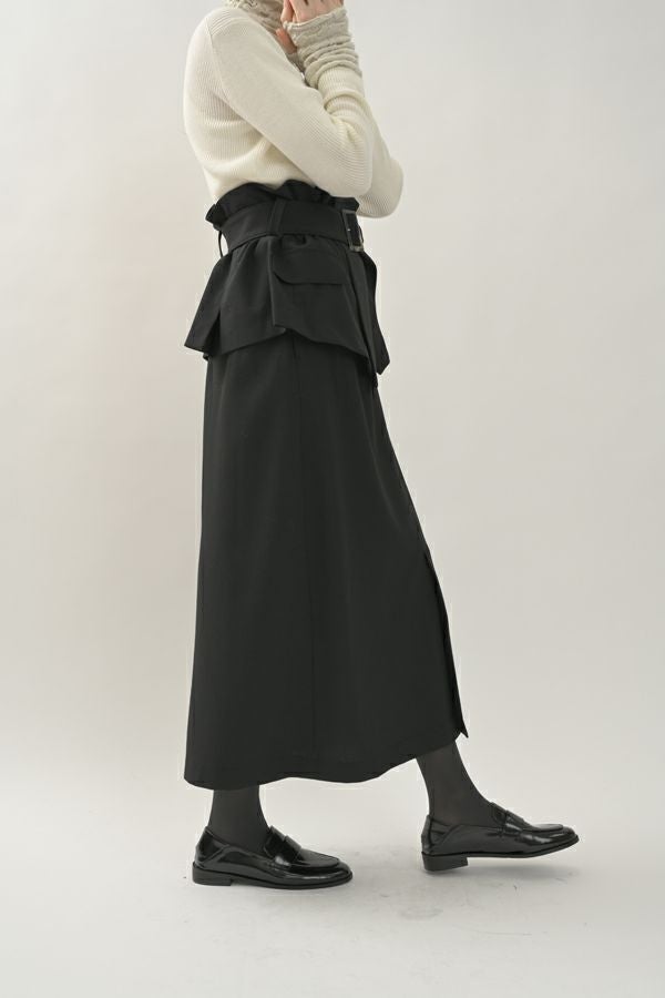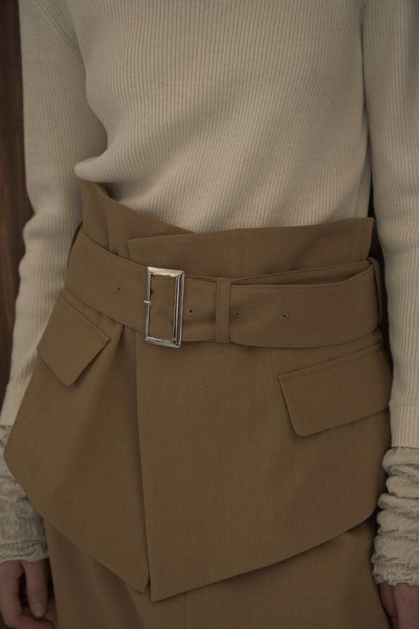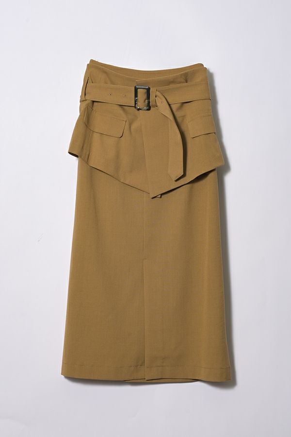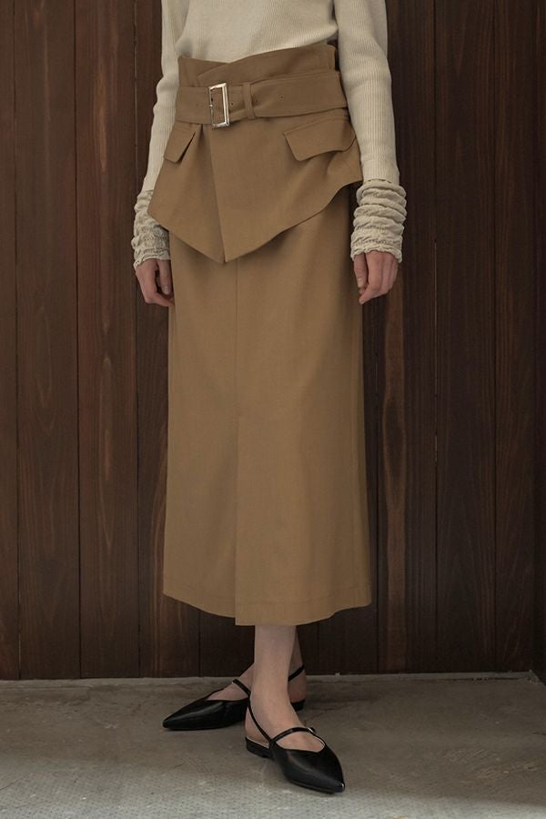 旬なコルセットがセットになったタイトスカート。 スカートは ほどよいタイトライン。前裾にベンツ開きを入れて軽さを出し、後ろウエストはゴム仕様になっておりシンプルなスカートとしてもかなり重宝します。 取り外し可能なコルセットは、ウエストをほっそり見せてくれるペプラム風デザインで手持ちアイテムとの幅広い合わせて変化を楽しめます。 スカートはコルセット無しでも使いやすく、シンプルなTシャツや、ブラウス合わせがおすすめで、トップスをインして合わせるだけで着映えします。 トップスにフィット感のあるリブトップスとレイヤードしてワンピース風のスタイリングもおススメ。勿論シャツやブラウスでオフィスカジュアルに合わせても◎