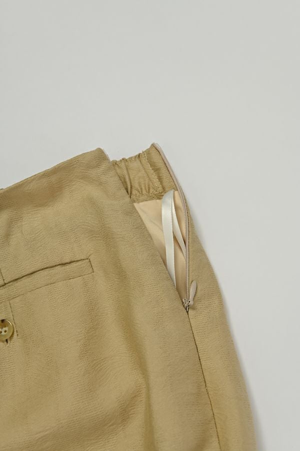 シンプルさの中に一目置かれる存在感のスカート。 前後2WAY仕様で着用可能。混率に含まれている竹は天然の抗菌力を持っており、柔らかく通気性があり、滑らかで肌にも優しい繊維です。ジャガードで織り柄が入っており高級感のある素材です。 ウエストは見返しとインベル(ウエスト部分に使用する芯材)タイプに仕上げているのですっきりとスマートに着用頂けます。前身頃に入れたタックによって歩くたび動きが出て女性らしい印象的に。 大人なIラインシルエットですがカジュアルな合わせで抜け感を出したスタイリングも可能です。ジャケットとセットアップコーデならオケージョンまで幅広く活用頂けます。 ●同素材でジャガードタックジャケット(25153-6079E)も有。 ●セットアップ可