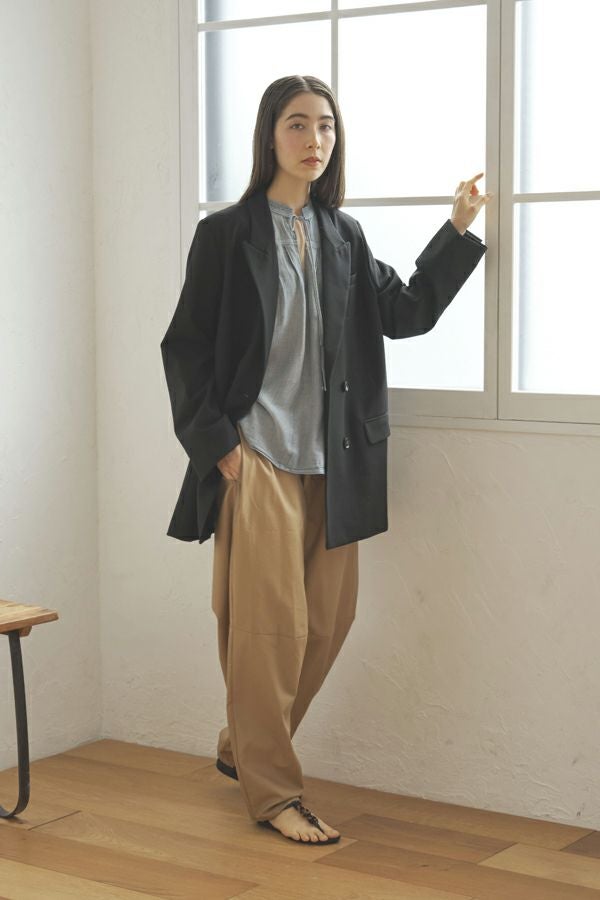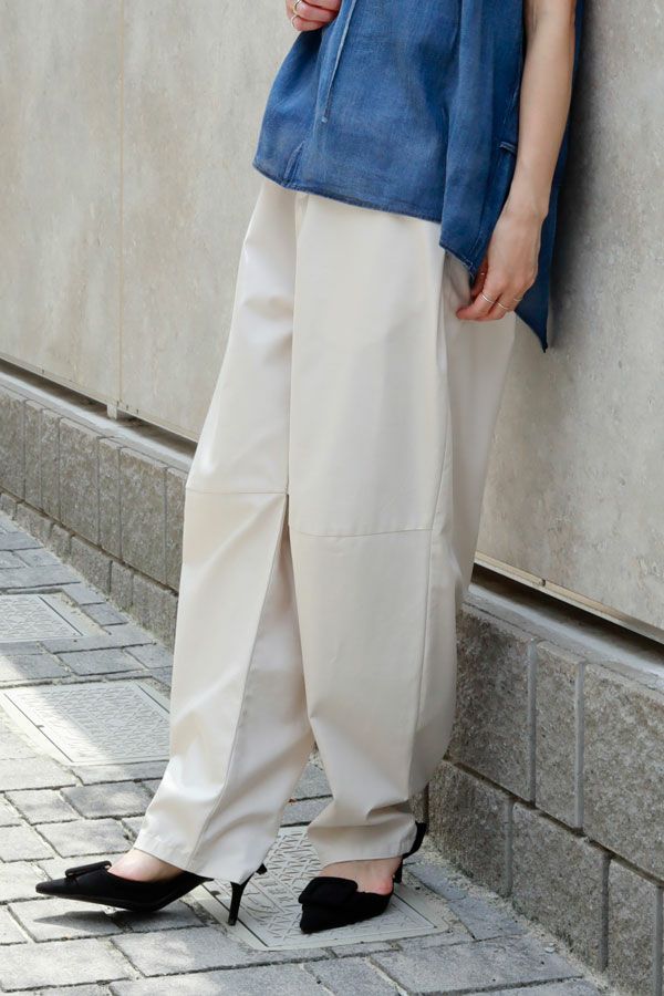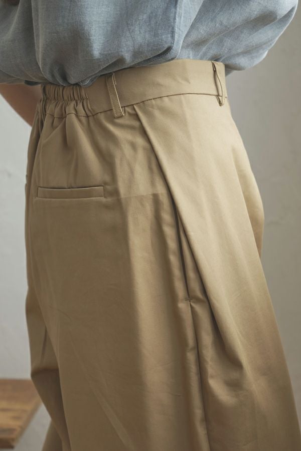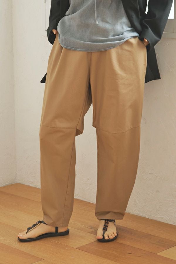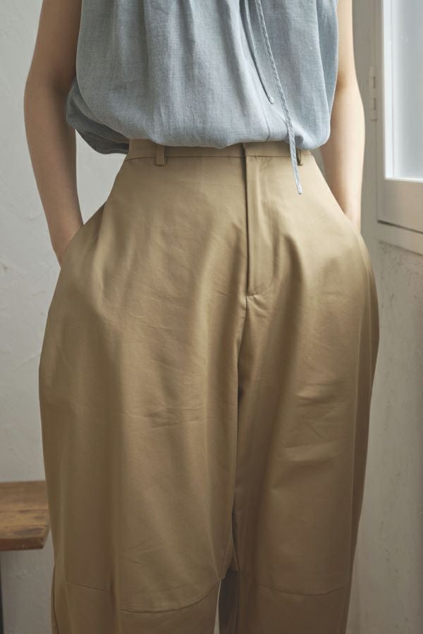 カジュアルときれいめの両方の顔を持つ万能コクーンパンツ。 環境にも配慮したリヨセル系のセルロースを使用したチノ素材です。リヨセルはレーヨンに比べて湿潤時の強度が3倍もあるといわれており、収縮も少ないので家庭でもお洗濯頂けます。 コクーンは幅広い世代、スタイルの方に合うシルエットです。カジュアル要素も強いですが、素材をきれいめにすることで綿100%とは違う表情を持っています。 シンプルにシャツなどを合わせてクールな装いもスマートに決まりますし、カットソー合わせでも足元を少しフォーマルにするだけでカジュアルになり過ぎないMIXコーデが完成します。 ●手洗い可