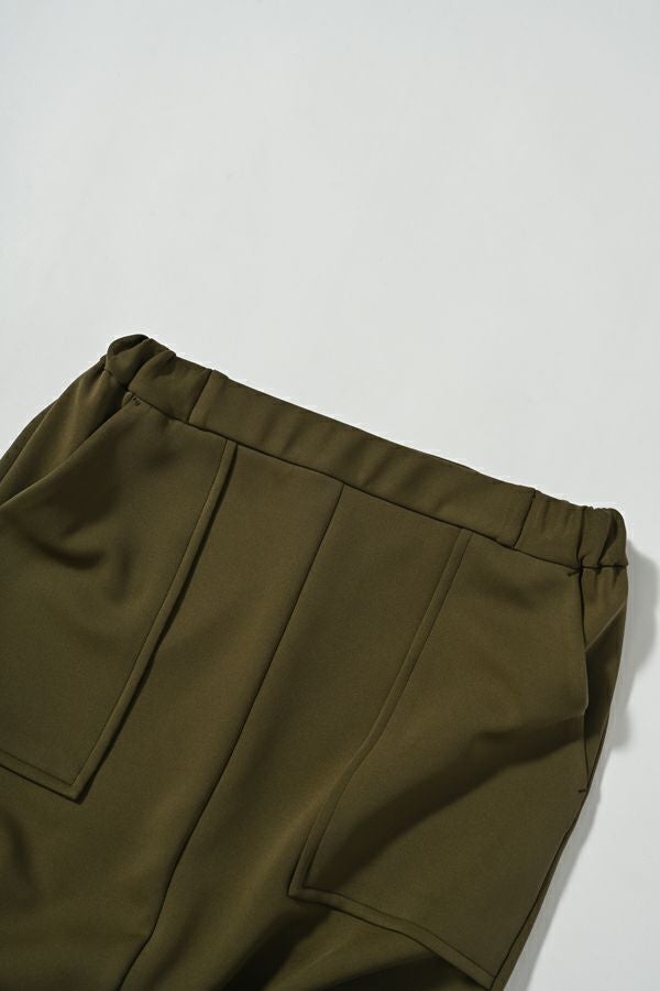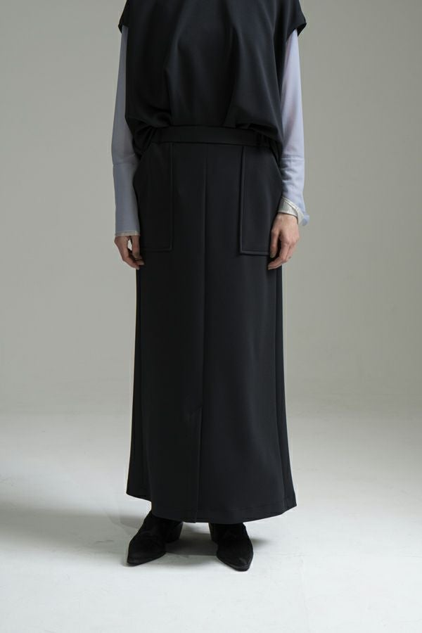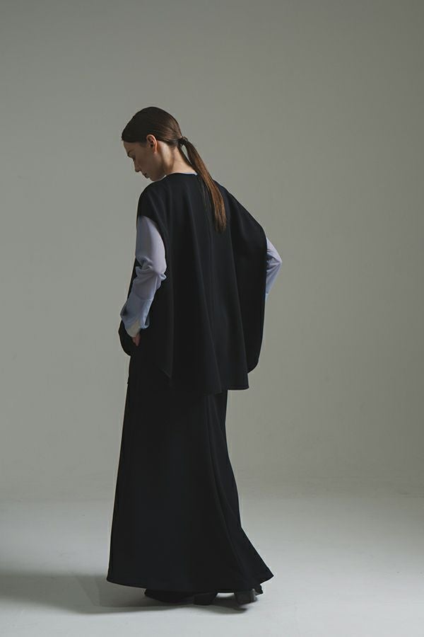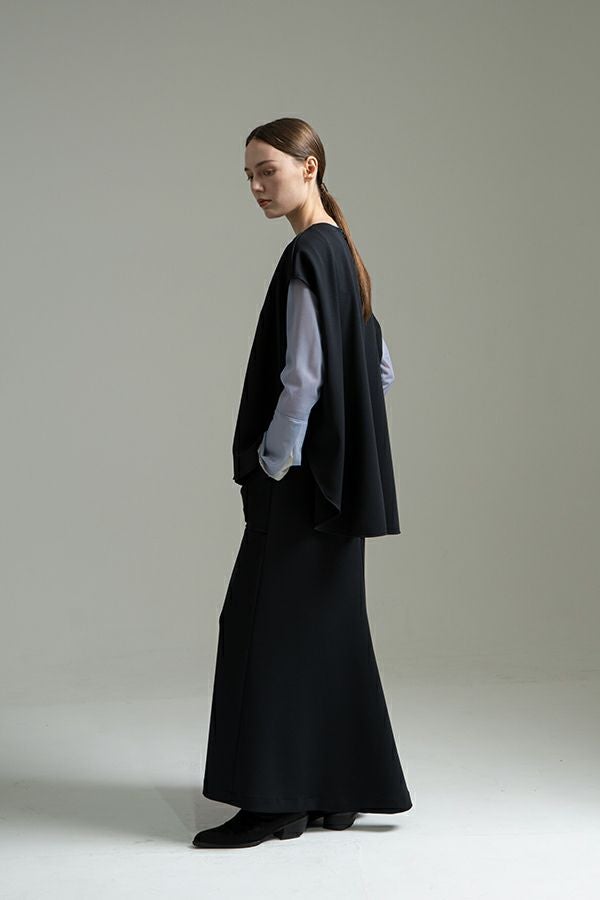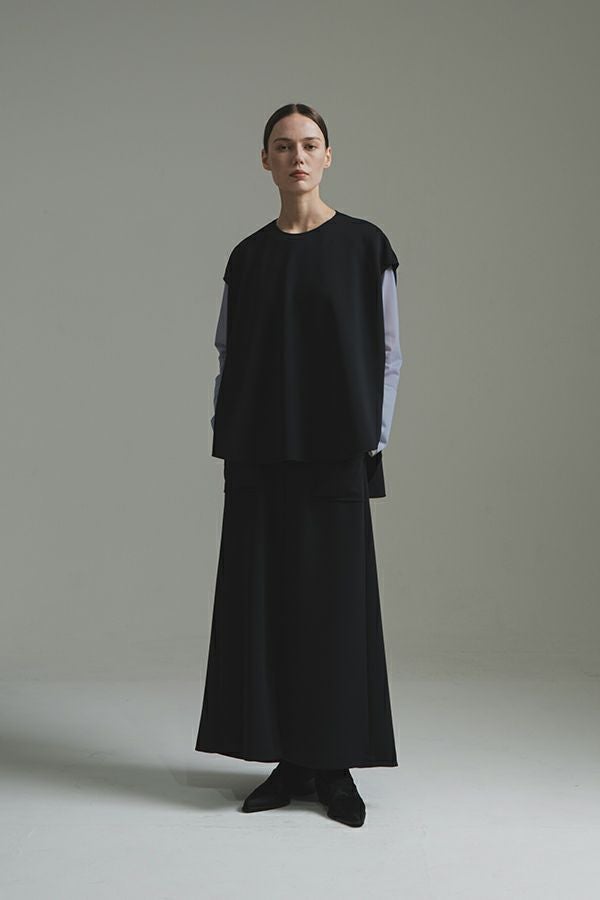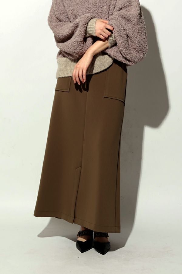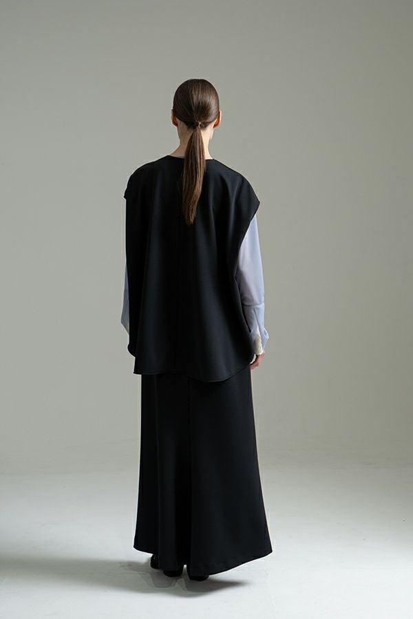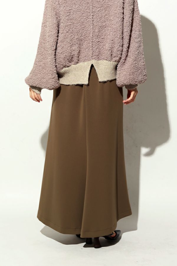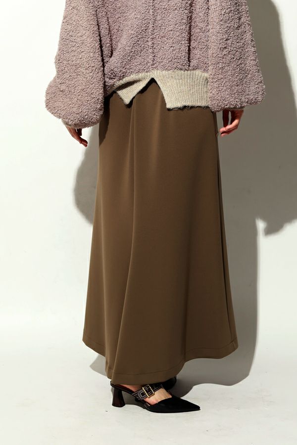 快適さと美しさを両立した、大人美シルエットスカート。 程よい厚みのあるダンボール素材が下着のラインを拾いにくく、安心感のある仕上がりに。UVカット機能とさらりと肌になじむ優しい生地感が秋の始まりにちょうどいい。滑らかな肌触りと落ち感が特徴で、歩くたびに美しく揺れるシルエットが上品さを惹き立てます。 【晩夏のクリーンモードスタイル】 シンプルなノースリーブトップスやタンクトップと合わせて、ミニマルで洗練された大人の装いに。 【秋のレイヤードスタイル】 同素材のプルオーバーやジレとセットアップで着こなせば、統一感あるワントーンコーデに。さらにトップスにシアータートルネックをレイヤードすれば、秋らしい抜け感を演出。季節をまたいで長く愛用できる、機能性と美しさを兼ね備えたスカートです。 ●日本製シーンレスプルオーバー(25223-1545Y)とセットアップ可