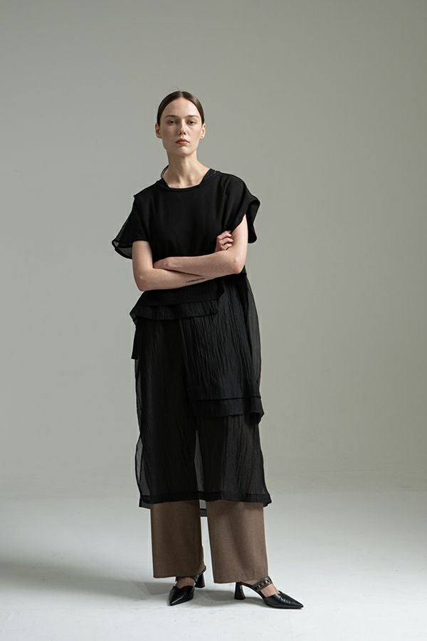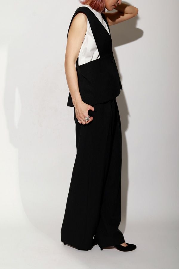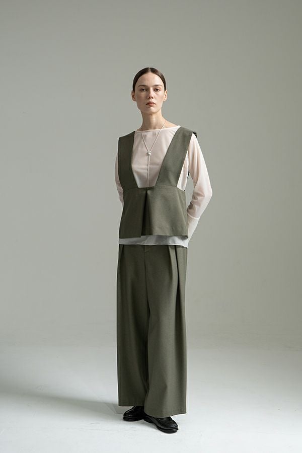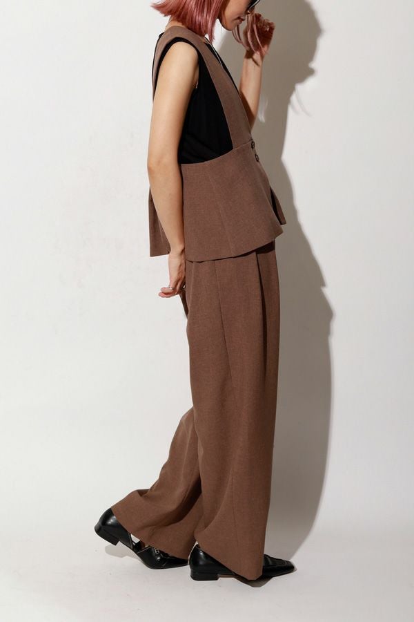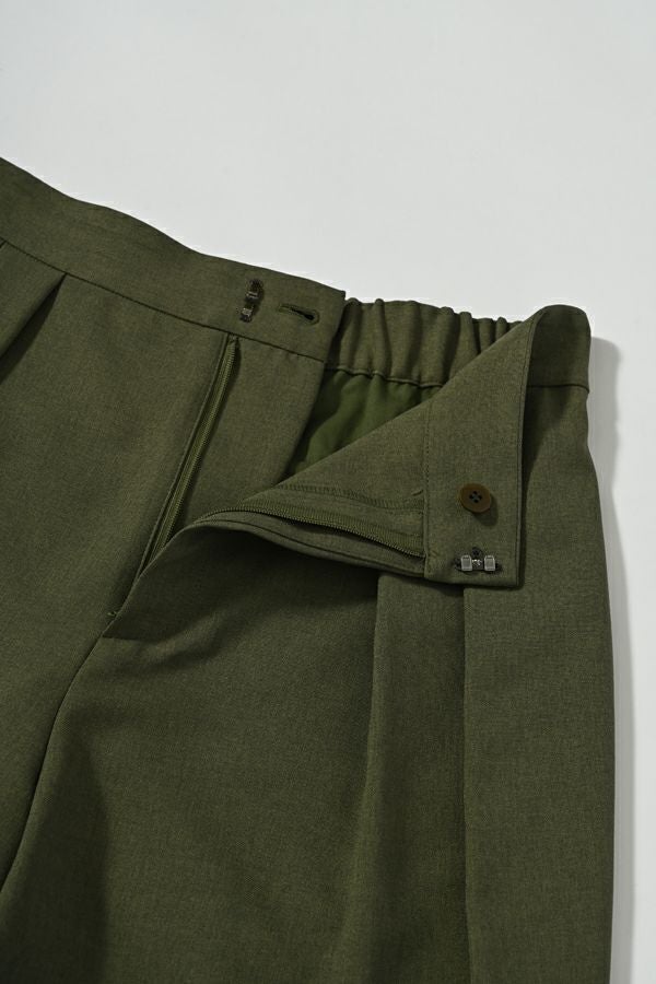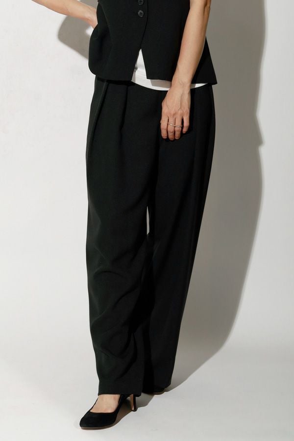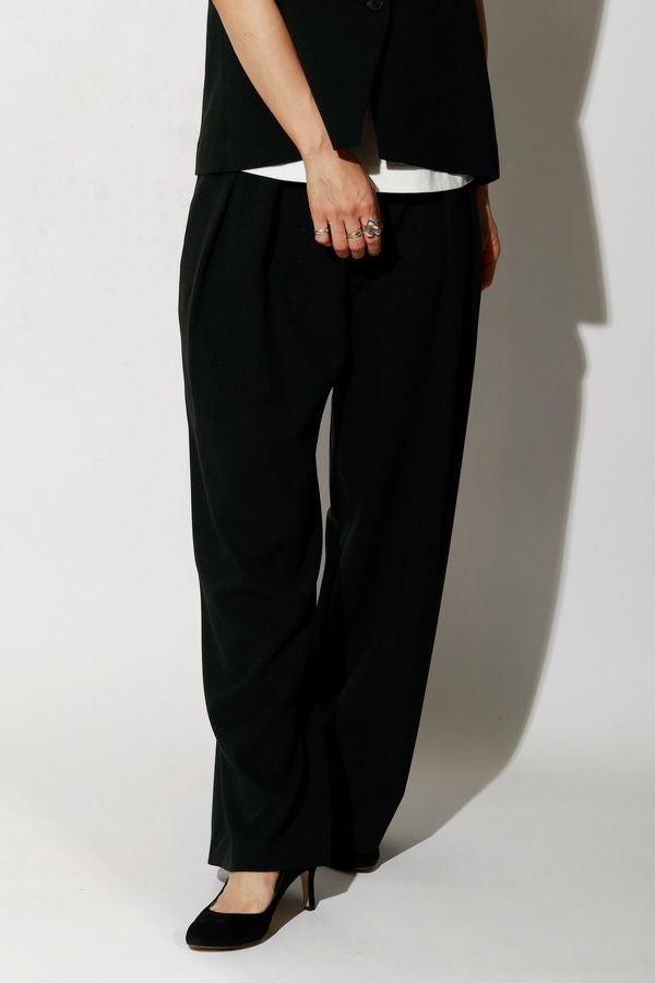 美シルエットで魅せる、2タックストレートパンツ。 2タックが生み出すゆとりとストレートシルエットの絶妙な組み合わせが、美しいラインを演出。ボリュームのあるストレートシルエットは引き続きトレンドを反映し、シンプルなデザインで仕立て映えする素材感が惹き立ちます。 麻調、ウール調の質感を持つポリエステルトロピカル素材を使用。 通気性や軽さが特徴の細い糸で織られた平織り生地は、ALLシーズン愛されるアイテムです。 インドやマレーシアなどの熱帯地方で好まれたことから「熱帯的な」という意味を持つ"トロピカル"の呼び名が付いたと言われています。 同素材のジレとセットアップで着用することで、セレモニーシーンにも最適。カジュアルからキレイめまで、幅広いスタイルにマッチする一本です。ワンピースのインナーとしてもモードな着こなしを楽しめます。●【Naturemier™】(ナチュレミア):タグ付 吸水速乾/イージーケア/UVカット/シワになりにくい/ソフトタッチ ナチュレミアは、天然素材のような優しい手触りと快適な着心地を実現する様々な機能を持ち合わせた素材です。●日本製 / 手洗い可●Vカットジレ(25223-5568Y)とセットアップ可