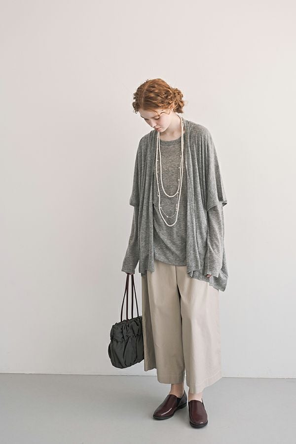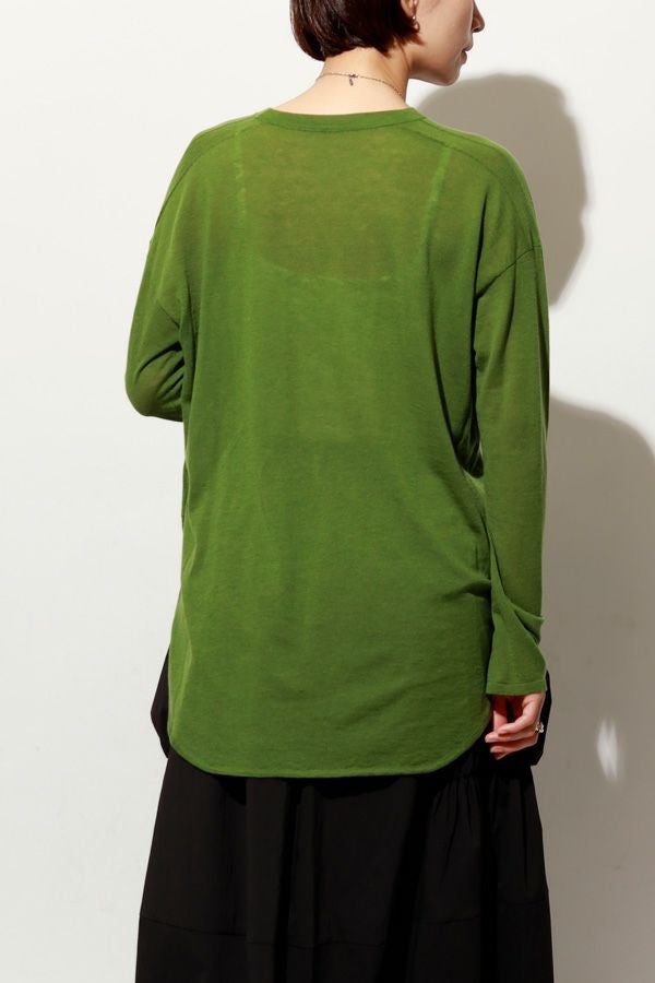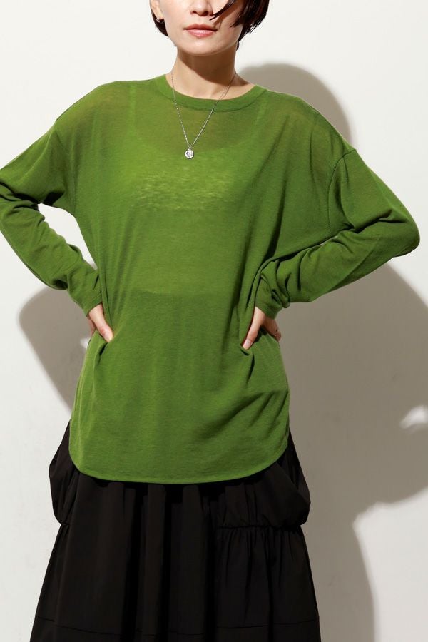 素肌が喜ぶしなやかな心地よさ、極上ウールのレイヤードプルオーバー。 今秋、新シリーズ「mocochi(もこち)」が登場。 カシミヤと同等の細い上質な羊毛、ウール100%のスーパーエクストラファインメリノを使用。通常は細くて編めないのですが、水溶性ビニロンと言う糸を補強糸に一緒に編みあげた後にお湯で水溶性ビニロン糸を洗い流すことで元糸だけが残るので混率も毛100%のままになっております。 肌に触れるアイテムなので自分自身を大切に思いやった一着です。シンプルなデザインなのでインナー使いに便利で、ニットを上に重ね着してラウンド裾を覗かせたレイヤードコーデもお楽しみいただけます。 【ウールの優れた特徴】 ◎保温性に優れています。 ◎吸湿性・発散性に優れています。 ウールは汗を吸収すると同時に素早く発散。蒸れを抑え快適な状態を保ちます。 ◎防臭・抗菌効果 ◎肌に優しい 湿疹やアトピー性皮膚炎の患者さんに症状軽減をもたらす実験効果があります。 ◎地球に優しい ウール100%は天然で再生可能です。 同じmocochi(もこち)シリーズのトッパーカーディガン(25228-3400Q-R)を上に羽織ったコーデもお薦めです。 ●非常にデリケートな素材ですのでアクセサリー等の引っかけに注意して下さい。●糸及び編み組織の特性上、下垂れしやすいのでハンガーには掛けず、畳んだ状態で保管して下さい。 ●手洗い可
