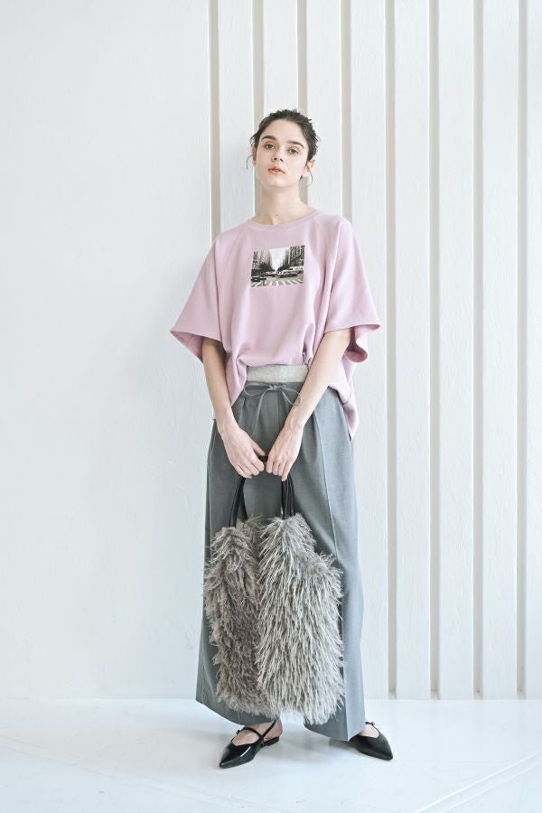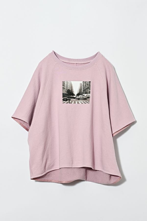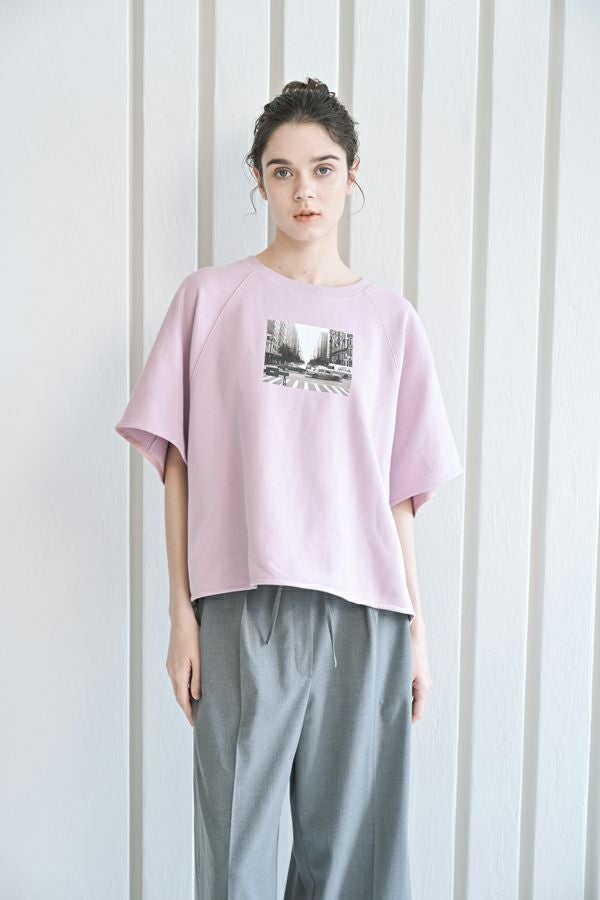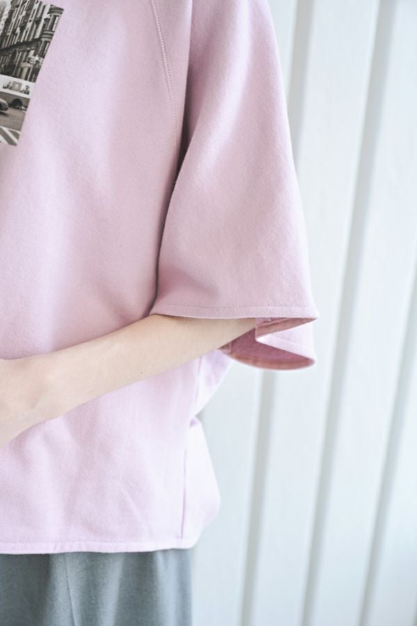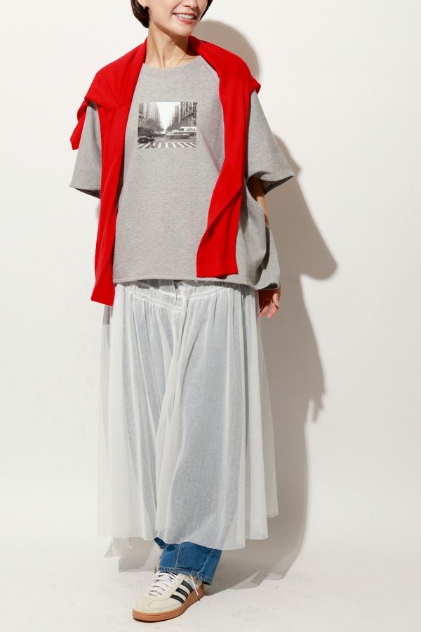 色々なシーンで活躍する、ワンランク上の大人ベーシックプルオーバー。 シンプルなTシャツのように着られ、オーバーサイジングなので 中にインナーを合わせたレイヤードスタイルも叶います。 袖口と裾は、裏パイピングで大人が着映えるキレイめな仕上げもポイント。 フロントにはモノクロフォトのプリント、後ろにはロゴプリントを施し、カジュアル要素も取り入れました。 デニムに合わせて抜け感のあるカジュアルコーデを楽しむのはもちろん、ティアードスカートに合わせたフェミニンカジュアルなスタイルもおすすめ。 Tシャツを中に入れてベストのようにレイヤードして着るのも新鮮です。