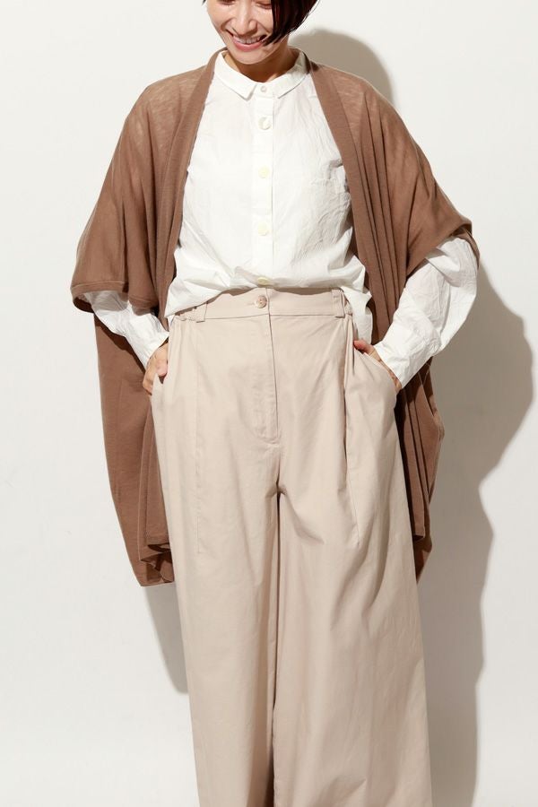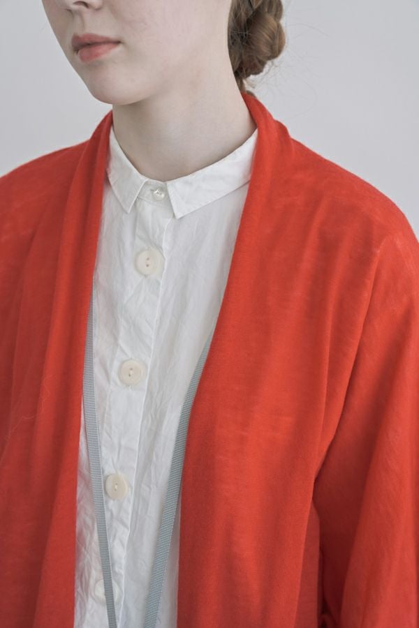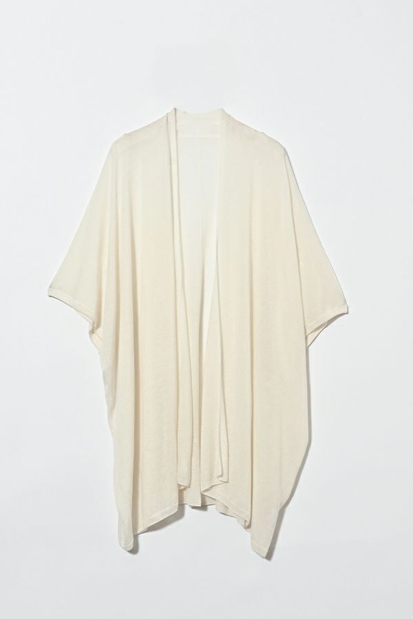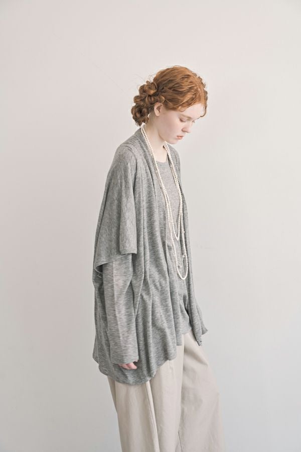 素肌が喜ぶしなやかな心地よさ、極上ウールのカーディガン。 今秋、新シリーズ「mocochi(もこち)」が登場。 カシミヤと同等の細い上質な羊毛、ウール100%のスーパーエクストラファインメリノを使用。通常は細くて編めないのですが、水溶性ビニロンと言う糸を補強糸に一緒に編みあげた後にお湯で水溶性ビニロン糸を洗い流すことで元糸だけが残るので混率も毛100%のままになっております。 肌に触れるアイテムなので自分自身を大切に思いやった一着です。シンプルなデザインなので気温差の激しい季節の変わり目に、半袖Tシャツやブラウス合わせてストール感覚でスタイリングがサマになります。 【ウールの優れた特徴】 ◎保温性に優れています。 ◎吸湿性・発散性に優れています。 ウールは汗を吸収すると同時に素早く発散。蒸れを抑え快適な状態を保ちます。 ◎防臭・抗菌効果 ◎肌に優しい 湿疹やアトピー性皮膚炎の患者さんに症状軽減をもたらす実験効果があります。 ◎地球に優しい ウール100%は天然で再生可能です。 同じmocochi(もこち)シリーズのニットプルオーバー(25228-1399Q-R・25228-1402Q-R)の上に羽織ったレイヤードコーデもお薦めです。 ●非常にデリケートな素材ですのでアクセサリー等の引っかけに注意して下さい。●糸及び編み組織の特性上、下垂れしやすいのでハンガーには掛けず、畳んだ状態で保管して下さい。 ●手洗い可