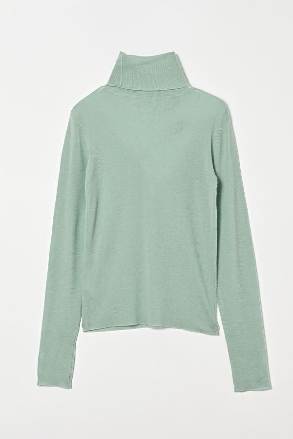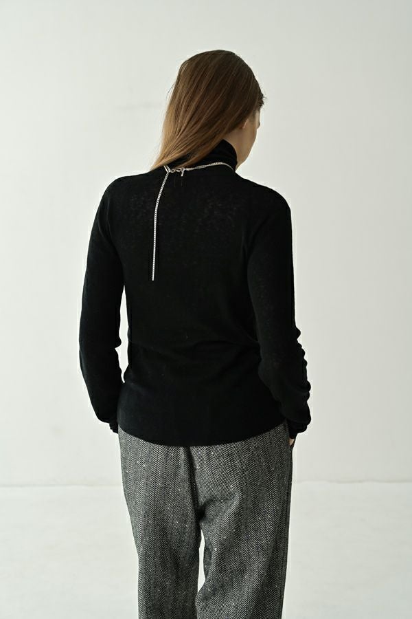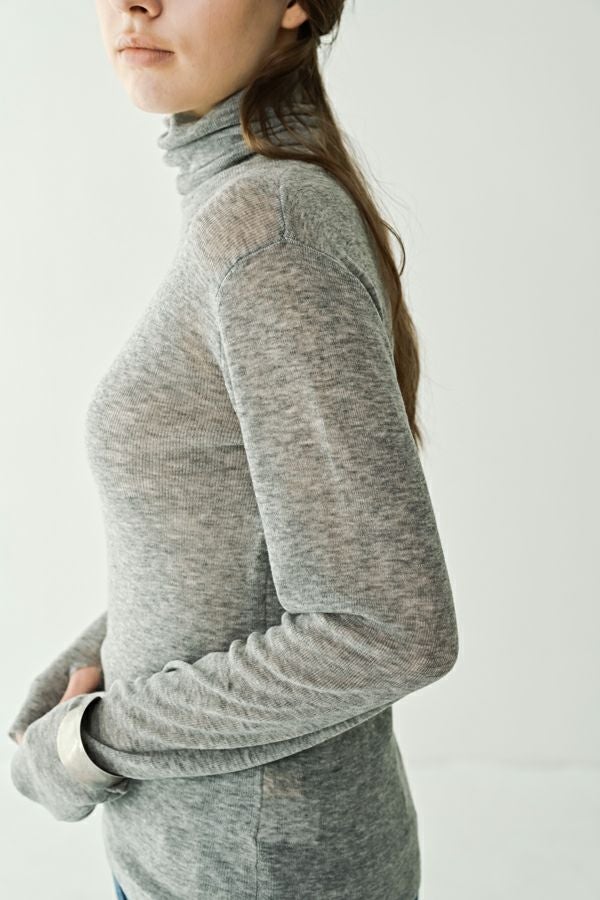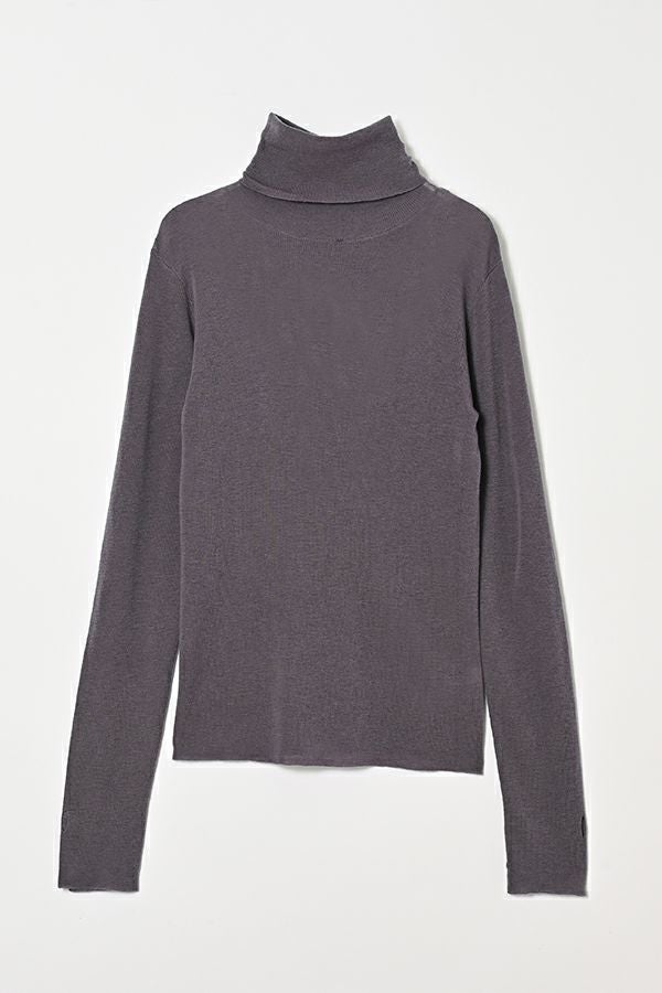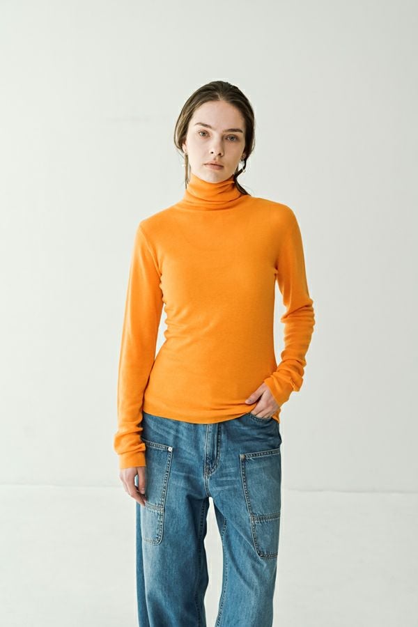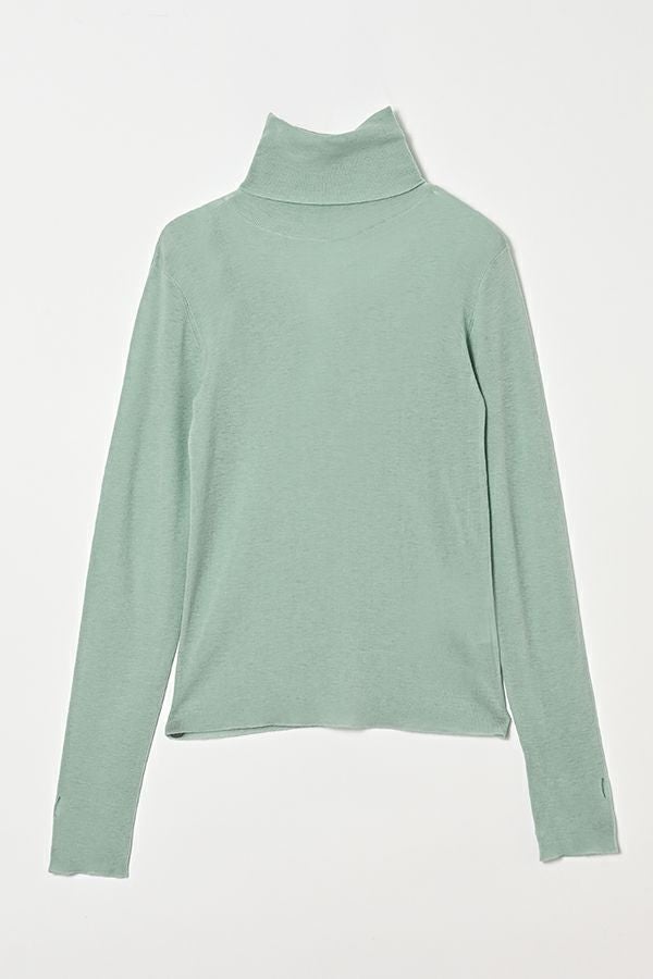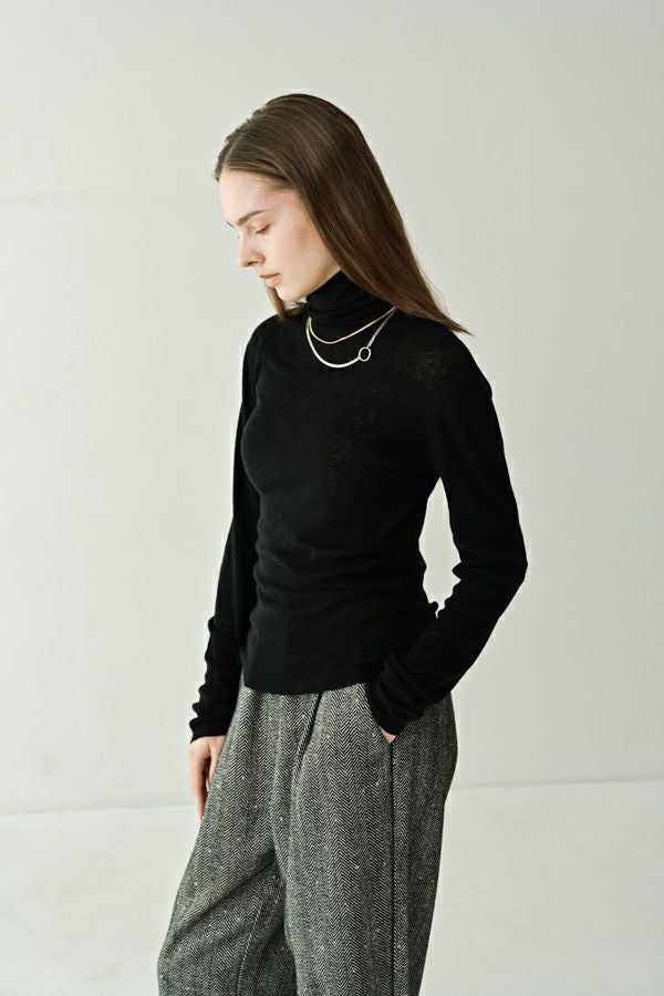 素肌が贅沢を知る、極上ウールのタートルリブプルオーバー。 毎日を少し特別にする、上質な肌触り。 まとった瞬間から手放せなくなる「ふわふわ、もちもち」の心地よさが、肌をやさしく包み込み、自分自身を思いやる一着に。今秋から登場の「mocochi(もこち)」シリーズです。 着ぶくれしない薄手のインナーニットながら、しっかりと暖かさをキープ。 冬の装いにクラス感を添える、頼れる存在です。 この特別な肌触りは、極細の上質なウールと、水で溶ける性質を持つ“水溶性ビニロン”を補強糸にして一緒に編み立てることで生まれます。最終の仕上げでビニロンが溶けてなくなり、純毛100%のニットへと仕上がります。 編み組織の間に空気を含むことで、軽やかでふんわりとした膨らみと柔らかさを実現。デリケートな肌にもやさしく寄り添い、敏感肌の方にもおすすめです。一度袖を通せばやみつきに。肌寒い季節の毎日に、つい手が伸びる上質なデイリーインナーです。 肌ざわりの良さと絶妙なフィット感で、インナーとして思わずヘビロテしたくなる一枚。長めのスリーブは親指が通せる仕様になっており、アームウォーマー風に着こなすことで、さりげないアクセントと機能性を両立。秋冬のレイヤードスタイルに欠かせない、品よく実用的な万能ニットです。 ●非常にデリケートな素材ですのでアクセサリー等の引っかけに注意して下さい。 ●糸及び編み組織の特性上、下垂れしやすいのでハンガーには掛けず、畳んだ状態で保管して下さい。 ●手洗い可