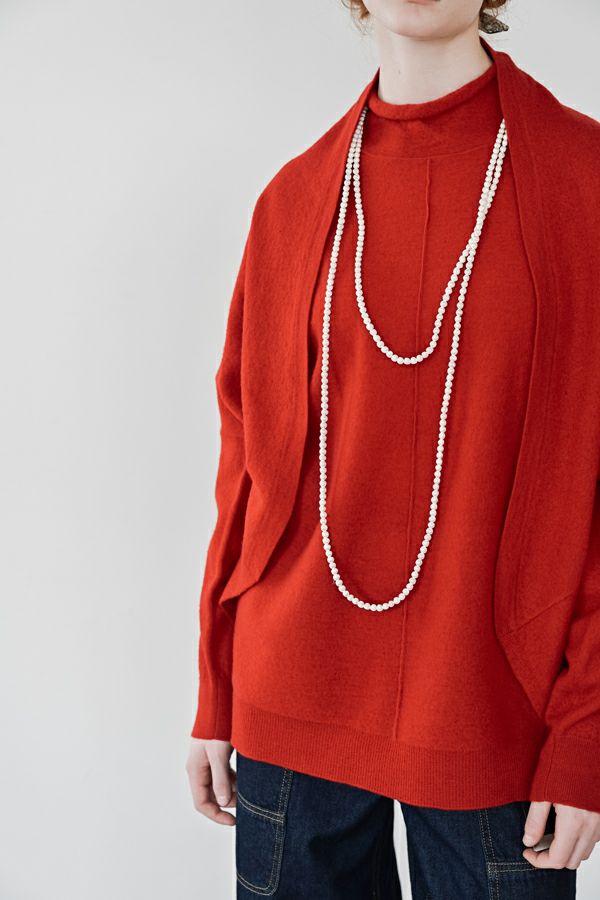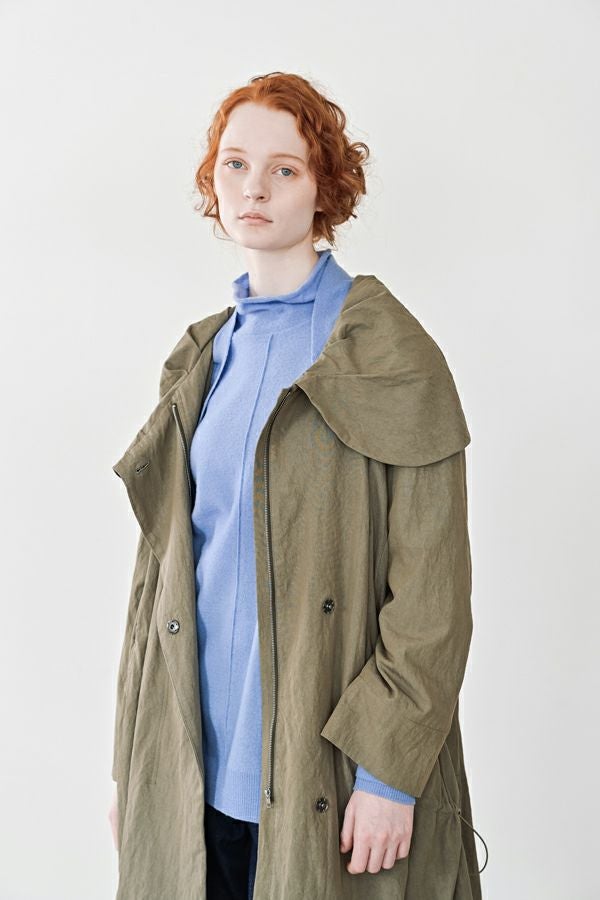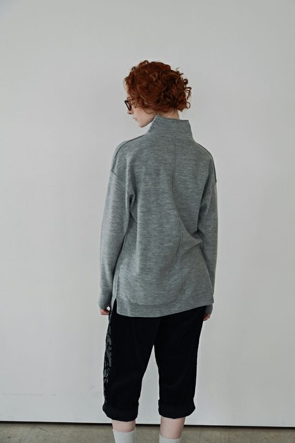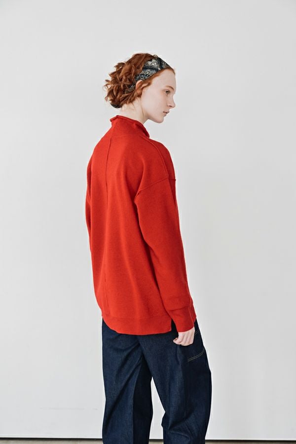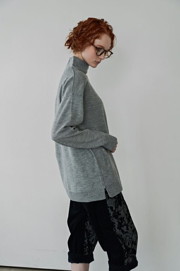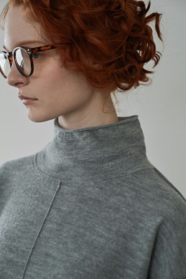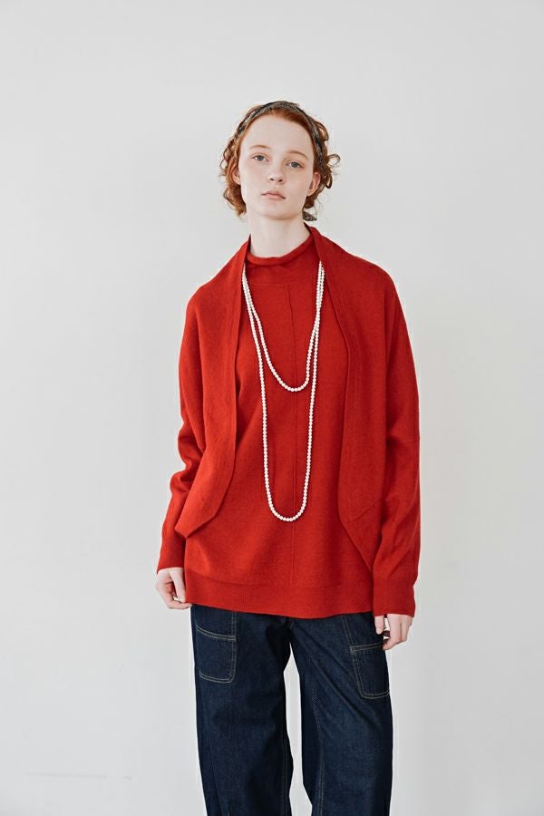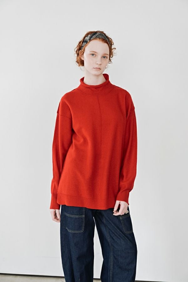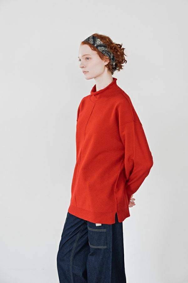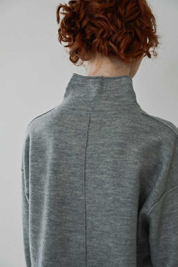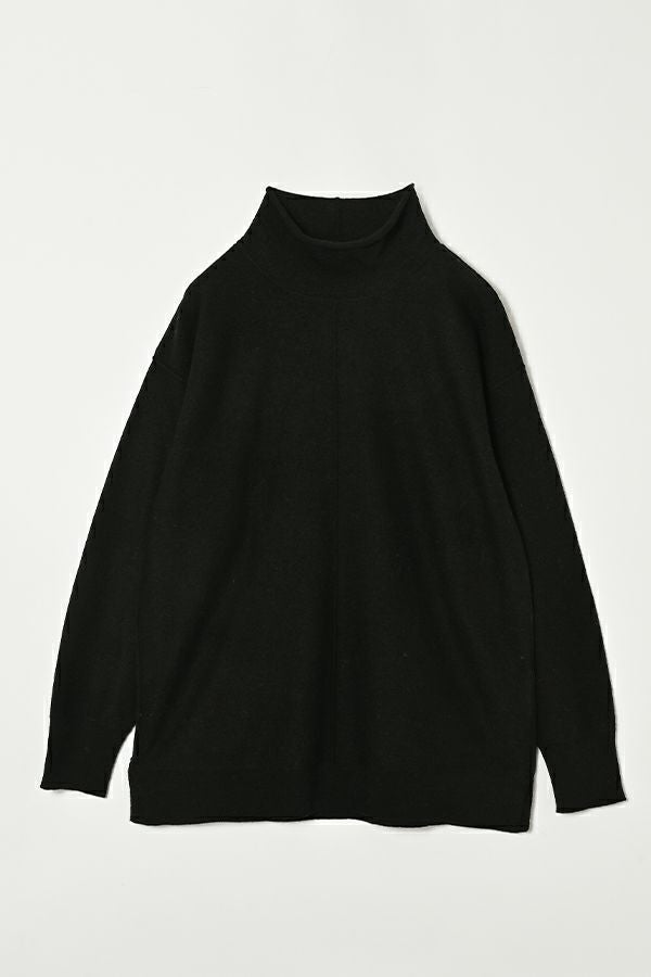 軽やかに、あたたかく。大人の冬を包むニットプルオーバー。 24AWでご好評いただいた圧縮ハイネックプルオーバーが、今季さらにアップデートして登場。今季は着丈を長めに設定し、気になる腰まわりをさりげなくカバー。好評だったハイネックの程よいゆとりあるシルエットはそのままに、より日常に寄り添うバランスに仕上げました。 毛100%の圧縮ウールは、軽やかなのに高い保温性と伸縮性を備え、ストレスフリーな着心地。薄手ながらしっかり暖かく、インナーとしても一枚着としても万能に活躍します。上質な素材感と洗練されたシルエットで、冬の装いをさりげなくクラスアップしてくれる一着です。 真冬にはシャツやブラウスをインした、レイヤードスタイルもお勧めです。 ●圧縮ショールカーディガン(25238-3682R-R)とアンサンブル着用も可