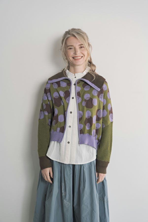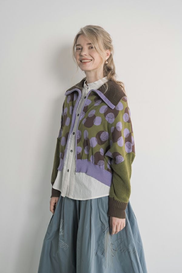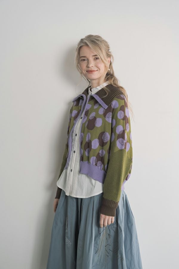 ドットジャガードZIPカーディガン